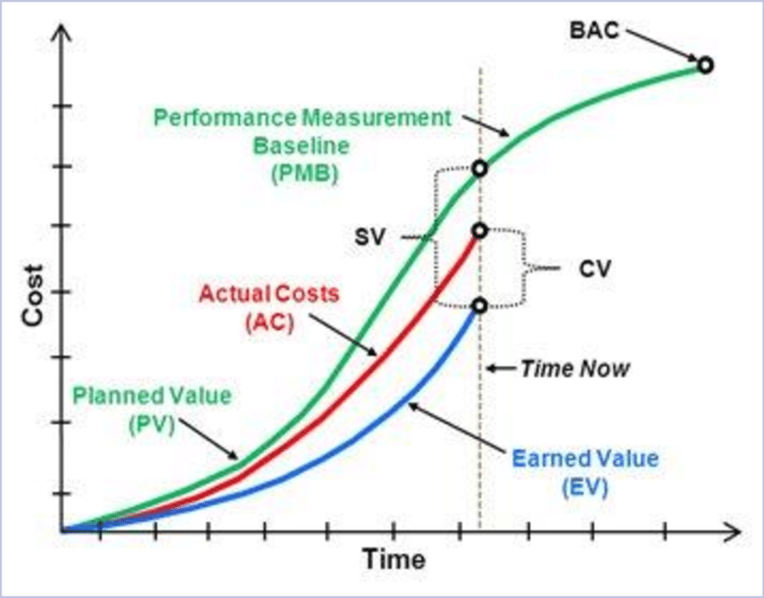 Cost Variance (CV) = Earned Value (EV) – Actual Cost (AC)